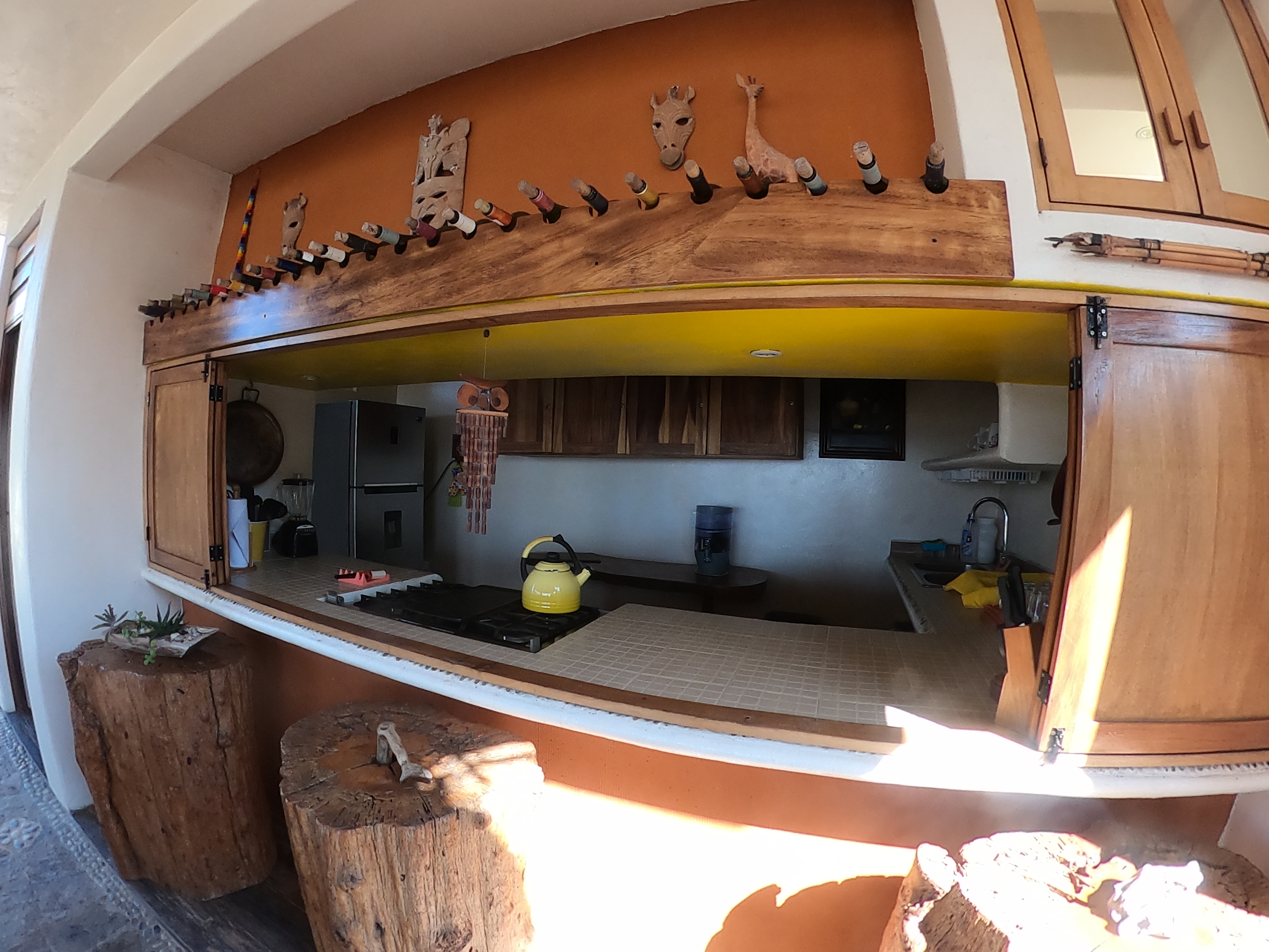 Su construcción de maderas tropicales finas de la región, se adapta perfectamente al panorama. De dos pisos, junto a un Guayacán que es uno de los árboles emblemáticos y endémicos de nuestra región. Primera planta: 2 camas individuales o convertible a cama king size, escritorio/tocador, cómoda; amplio baño, amenidades ecológicas, closet, caja de seguridad laptop size y rack de surf boards exterior. Segundo piso (escaleras), cocineta y amplia terraza con hamacas y juego de mesa con sillas.
